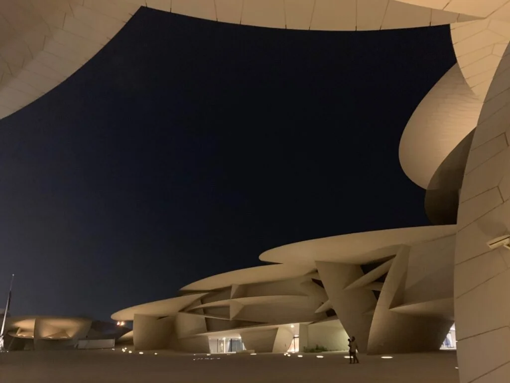 Jag anländer till museet när det öppnar klockan åtta på kvällen. Det är Ramadan och det sprillans nya Nationalmuseet i Qatar har nattöppet eftersom ingen orkar gå på en utställning på dagtid när temperaturen går upp emot femtio grader och man varken äter eller dricker på allmän plats.